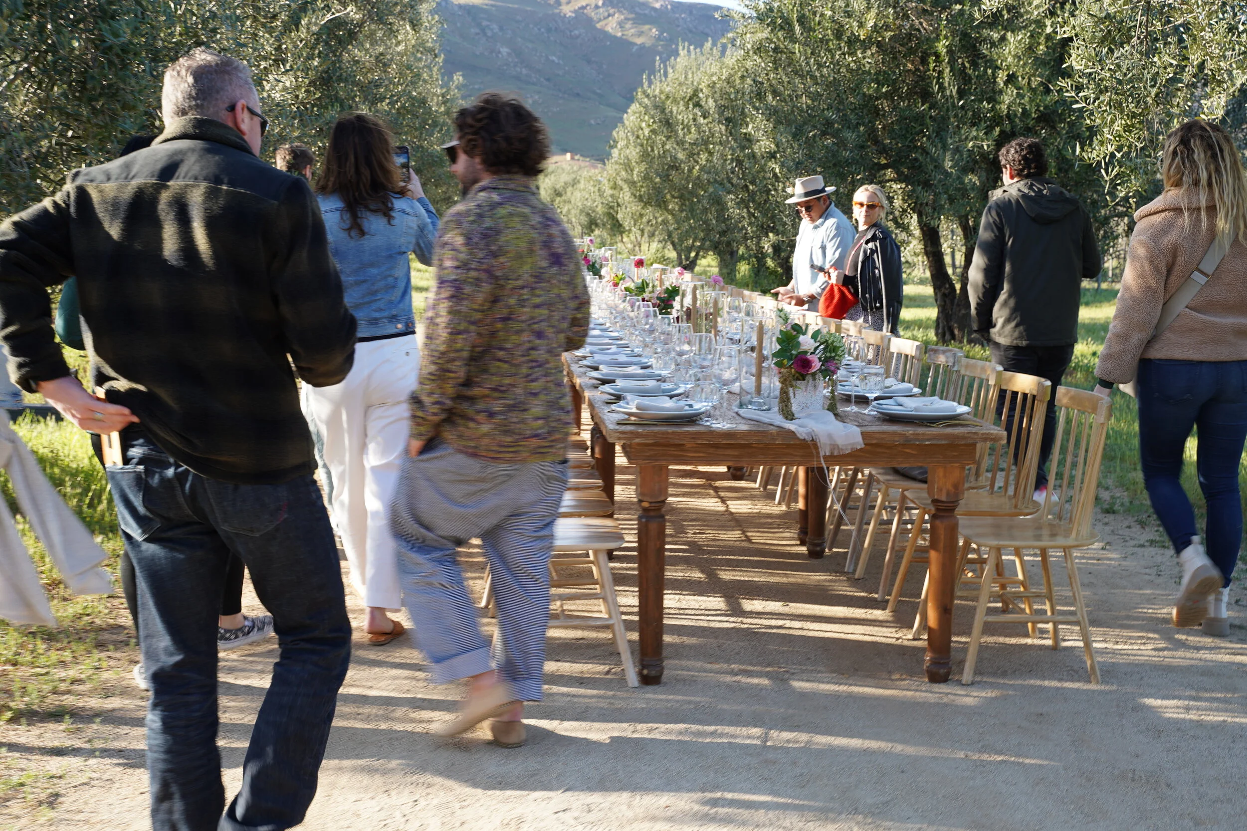 Once ushered to a long al fresco farmstyle table with a gorgeous tablescape, we were poured our first wine straight away, a Grenache Rose from Lomita, locally made. Our first course was a Seasonal roasted vegetable Salad with local sheep cheese, buckwheat and grilled fresh bread. If I had to choose, this was my favorite dish of the evening… the sheep’s cheese was so delicious as there truly is nothing compared to the flavors of a local fresh cheese. Clean and rustic, delicious food with a crisp Rose bundled in our sweaters cozied up with those we love and surrounded by new friends… it was a truly a highlight of my life.